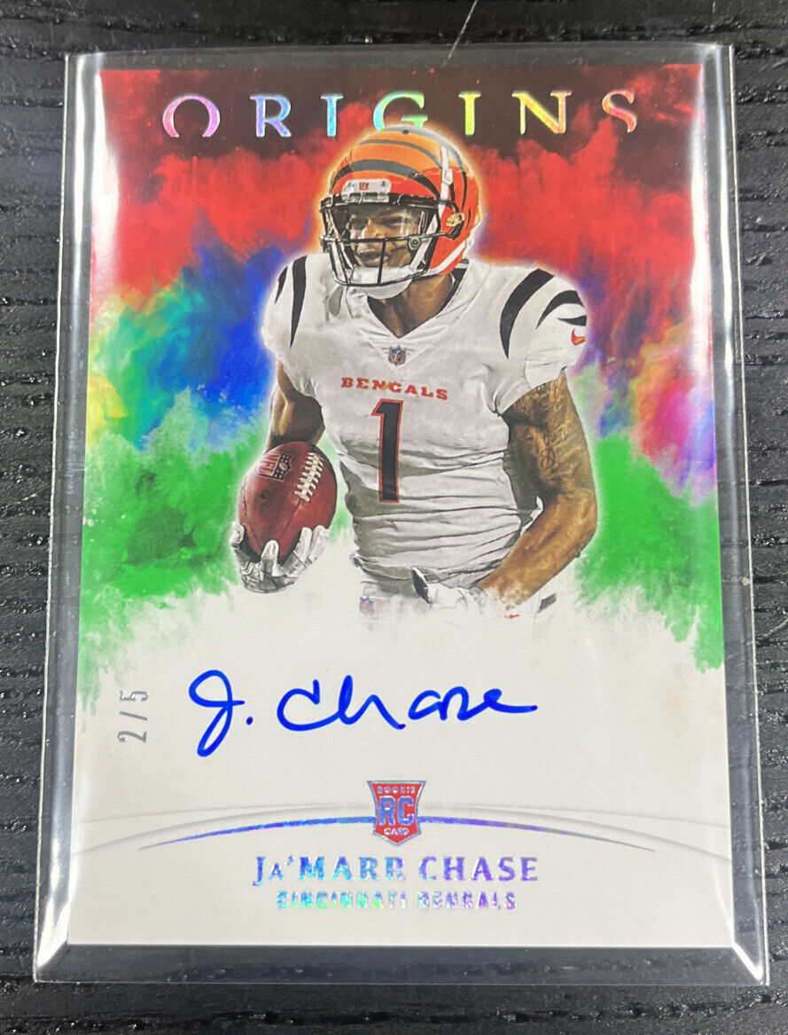 2021 Panini Origins Jamarr Chase Auto Bengals Rookie RC /5 Green on Card